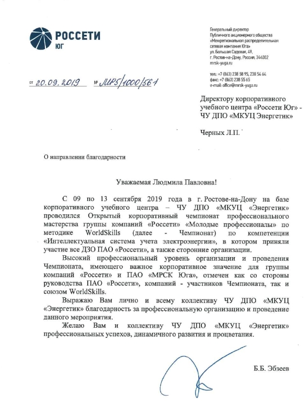 директор ПАО "МРСК Юга" Б.Б.Эбзеев