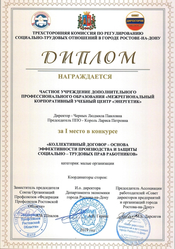 в номинации «Лучший коллективный договор»