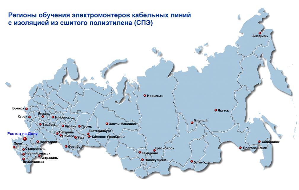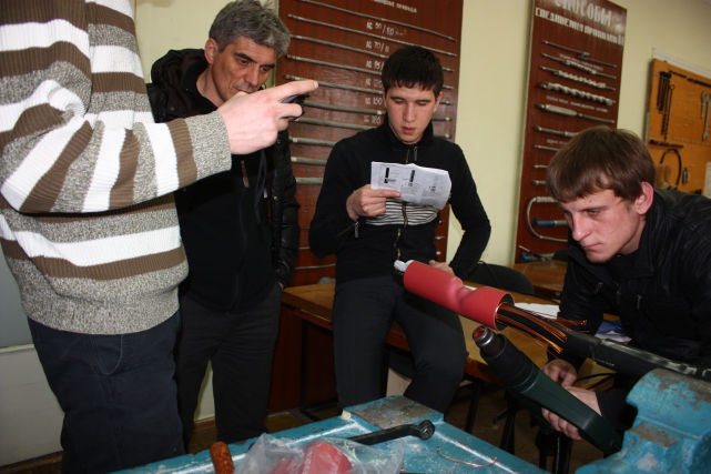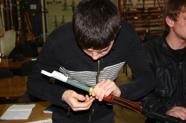 Плановые и внеплановые группы. Срок обучения - 12 дней (72 академических часа). В связи с тем, что кабели с изоляцией из сшитого полиэтилена не имеют многих недостатков, характерных для кабелей с бумажной изоляцией, их внедрение позволяет решитьпроблемы по надежности электроснабжения, снижению расходов на реконструкцию и эксплуатацию кабельных линий. Кабели со СПЭ-изоляцией имеют большие перспективы при строительстве и модернизации кабельных линий на напряжение 6 - 35 кВ. Благодаря техническим характеристикам, высокой электрической прочности изоляции, малой повреждаемости, длительному сроку службы, их применение является технически обоснованным и экономически выгодным. ЧУ ДПО "МЭИ Юга" проводит теоретическое и ПРАКТИЧЕСКОЕ обучение электромонтеров кабельных линий монтажу кабельных муфт (в т.ч. для ТРЕХЖИЛЬНЫХ кабелей СПЭ) и прокладке кабелей с изоляцией из сшитого полиэтилена на среднее напряжение до 35 кВ включительно, а также прокладке кабеля СПЭ на напряжение 110 - 220 кВ. Для разделки кабеля СПЭ на практических занятиях используются инструменты финской фирмы ENSTO G-20 (удаление оболочки и снятие изоляции) и французской фирмы ALROC (снятие полупроводящего слоя). Для термоусадки изоляционных трубок используется промышленный фен фирмы ENSTO. Одним из главных факторов, влияющих на качество и надежность монтажа муфт, является строгое соблюдение технологии разделки изоляционных элементов кабеля специальными инструментами и умение их настраивать. Это обеспечивает минимальное количество и минимальные размеры заусенцев, создающих в эксплуатации точки повышенной напряженности электрического поля, которое, ионизируя молекулы газов и загрязнений попавших во время монтажа муфт), а также молекуты твердой изоляции, увеличивают вероятность пробоя изоляции на ранних стадиях эксплуатации. Навыкам